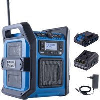 Das Radio ist Teil der Scheppach IXES 20-Volt-Serie, wodurch alle Akkus und Ladegeräte dieser Systemreihe kompatibel sind. Im Lieferumfang ist ein 2Ah Akku und ein 2,4A Ladegerät enthalten.