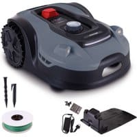 - Lieferumfang: 250 m Begrenzungskabel, 320 Drahtstifte, 6 Befestigungsheringe, 9 Mähmesser (3 vormontiert, 6 Ersatzmesser), Ladestation mit Netzteil