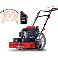 Zum Lieferumfang gehören neben dem Wiesenmäher selbst zehn Ersatzfäden und Motoröl, sodass Sie sofort mit der Arbeit starten können, ohne weitere Materialien zu besorgen.